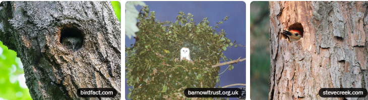 - جغدها: اغلب از حفرههای موجود (مانند ساختهشده توسط دارکوبها) یا لانههای قدیمی شاهینها استفاده میکنند ) 24) .