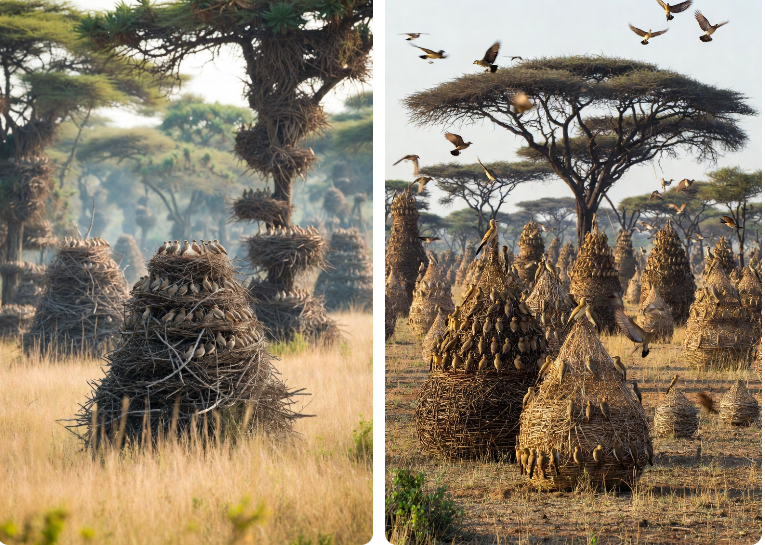 شگفتیهای لانهسازی پرندگان، به ویژه بافندگان اجتماعی بر روی درختان